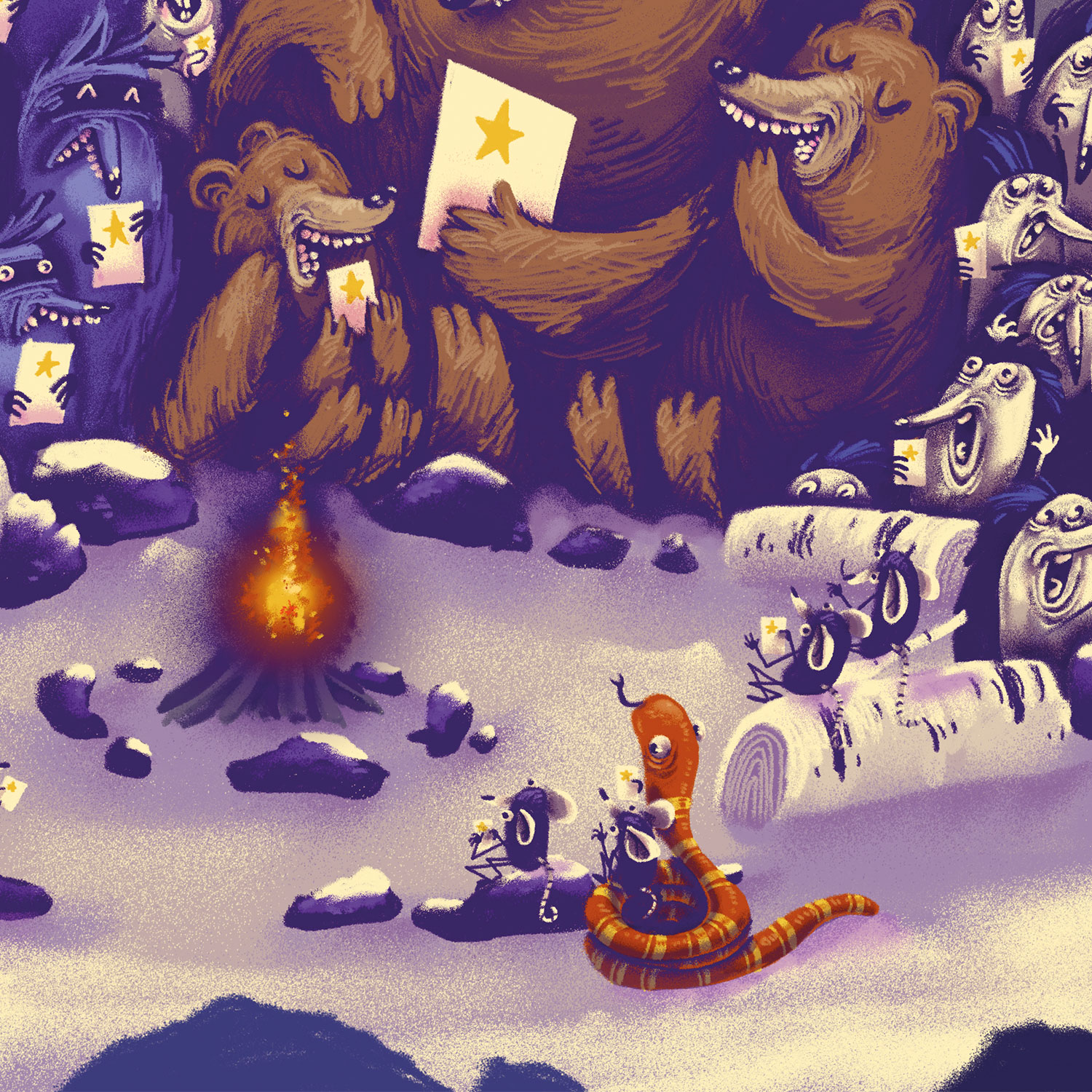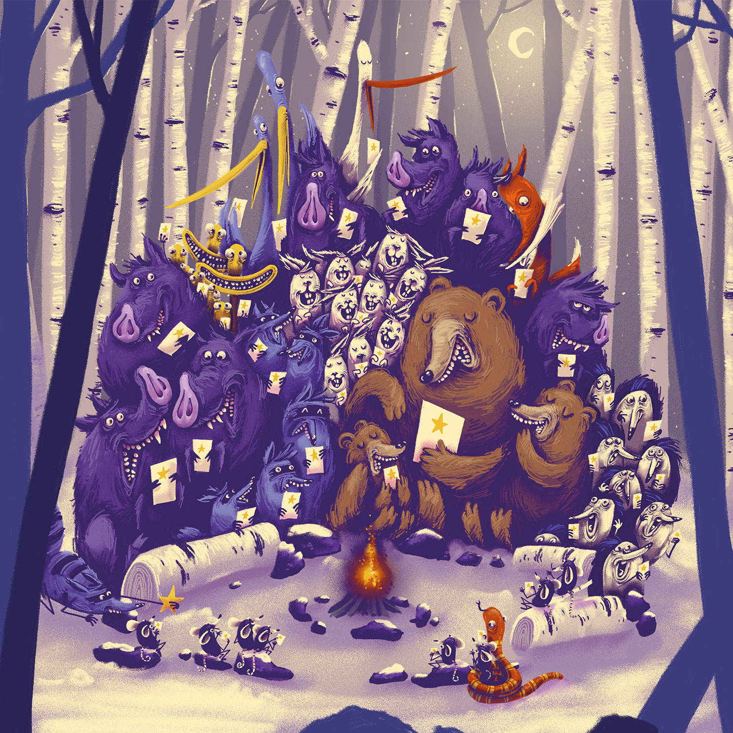 Gemeinsam singen am Lagerfeuer, ist nicht nur was für uns Menschen. Begleite die Tiere des Waldes bis sich alle an der feuerstelle versammelt haben und ein Liedchen anstimmen.